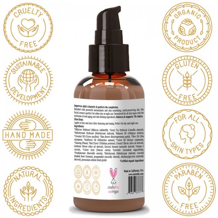 Blended with powerful antioxidants and skin nourishing, youth-preserving oils, this facial cream is perfect for either day or night use. Formulated for all skin types with the inclusion of anti-aging and skin firming ingredients to improve skin’s elasticity & perfect the complexion.