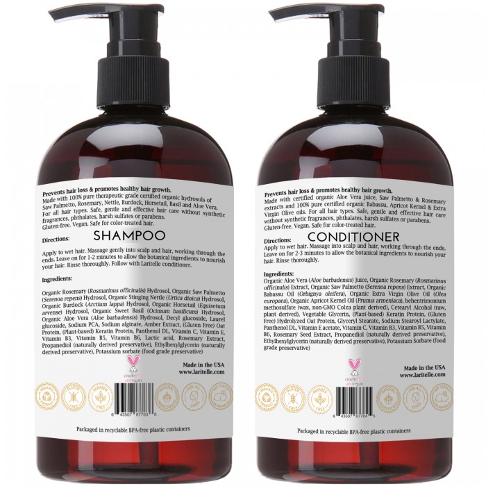 Laritelle Organic Hair Care Set Herbal Magic: Shampoo 17.5 oz + Conditioner 16 oz + Bonus Post-Shampoo Hair Strengthening Treatment