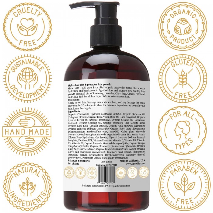 - ORGANIC CONDITIONER TO STOP HAIR LOSS & PROMOTE NEW HEALTHY HAIR GROWTH. Softens hair, nourishes the hair-shaft, rejuvenates hair follicles. Made with certified organic Babassu, Olive, Apricot Kernel oils and Ayurvedic herbs, therapeutic hydrolats, and best known to stop hair loss and promote new healthy hair growth essential oils of Rosemary, Lavender, Clary Sage, Ginger, Patchouli and Clove Bud.