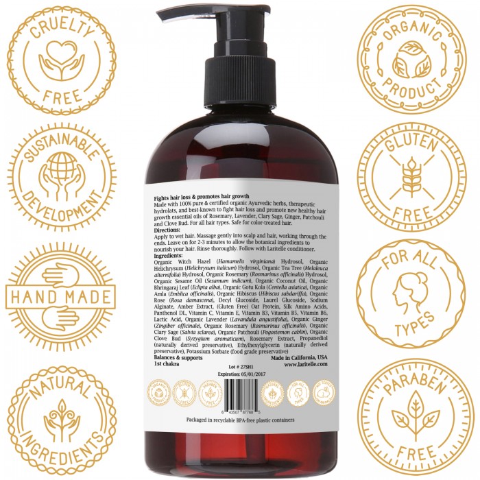 - FIGHTS HAIR LOSS & PROMOTES NEW HEALTHY HAIR GROWTH. Softens hair, nourishes the hair-shaft, rejuvenates hair follicles. Strengthens & protects the hair. Antioxidants-rich organic Ayurvedic herbs, organic Lavender, Ginger, Rosemary, Patchouli and Cloves help to promote hair growth, stimulate the scalp and the roots. Clary Sage strengthens the hair on the cellular level, prevents premature hair loss, balances scalp oils, adds luster and shine. EXTRA KIND & GENTLE to your scalp and hair. Rich, creamy, and sudsy. Nourishing for all hair types. Safe for color-treated hair.